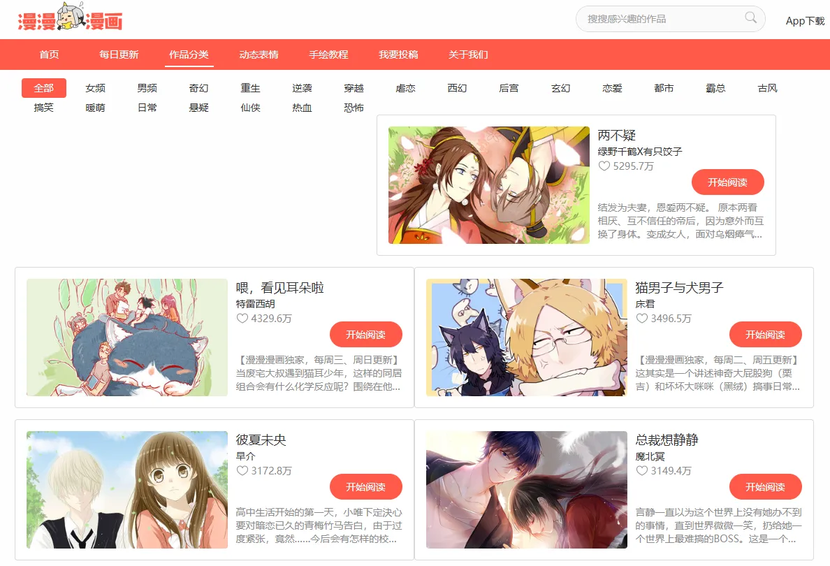 传统黑白漫(Manga):通常是黑白,设计为跨页或单页的阅读格式,模拟纸质书的翻页体验,内容多为日漫。