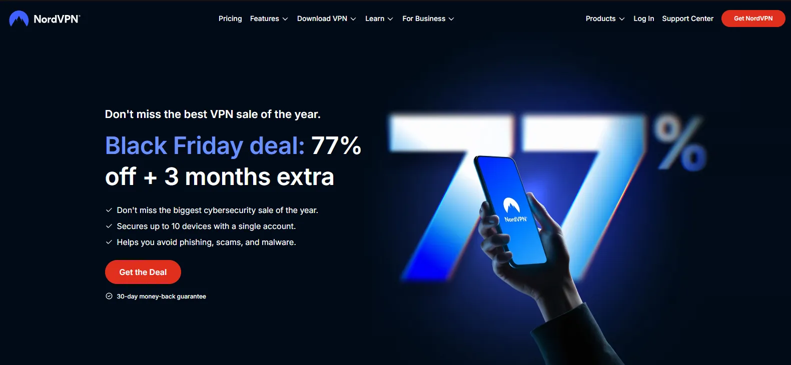 NordVPN 专注于提供军用级加密和卓越的隐私保护。提供独特的双重 VPN 功能,将你的数据通过两个不同的服务器路由,实现极致的匿名性。