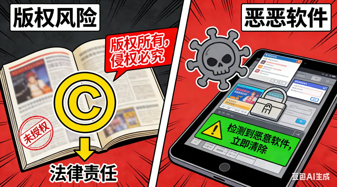 你必须了解数字漫画世界中的两大主要威胁:版权风险与恶意软件。