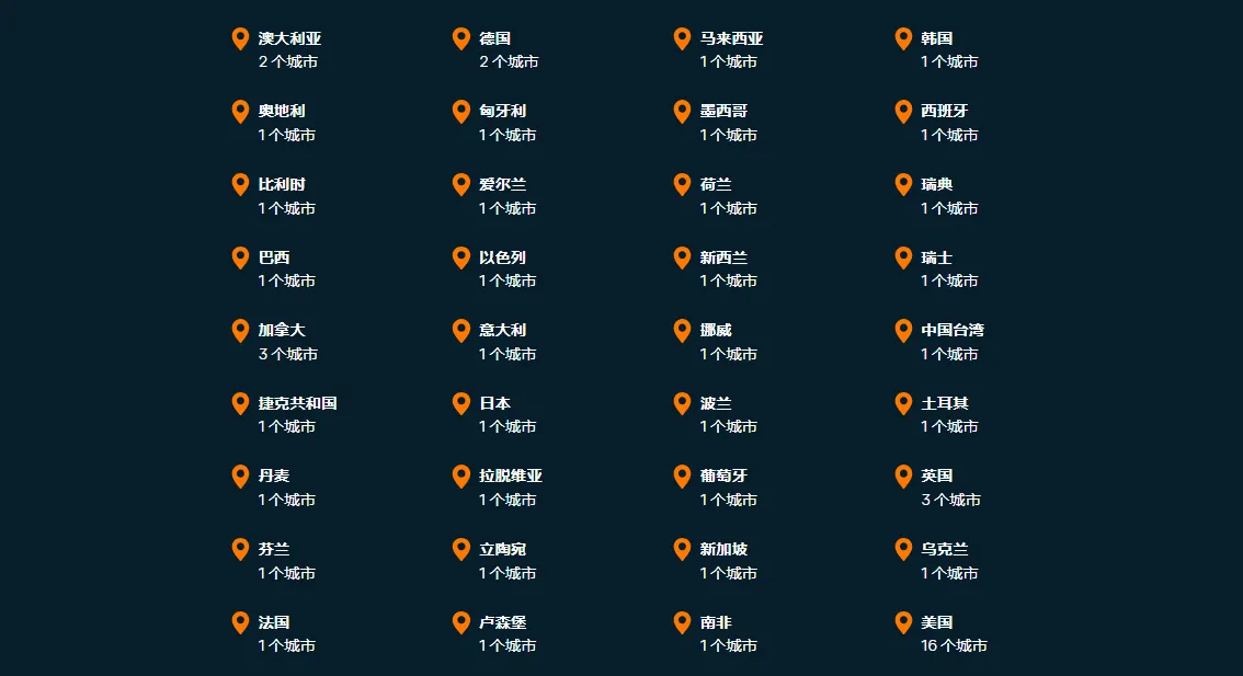 然而,相比行业巨头动辄 60-100 个国家/地区、数千台服务器的规模,ASLVPN 在覆盖面和密度上明显不足。这限制了其在某些冷门或高需求地区(如非洲、南美)的选择弹性。