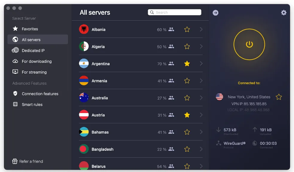 动态多跳 (Dynamic MultiHop): 2026年新功能,允许你通过两个不同的服务器加密,进一步隐藏你的真实归属地,防止支付系统追踪。