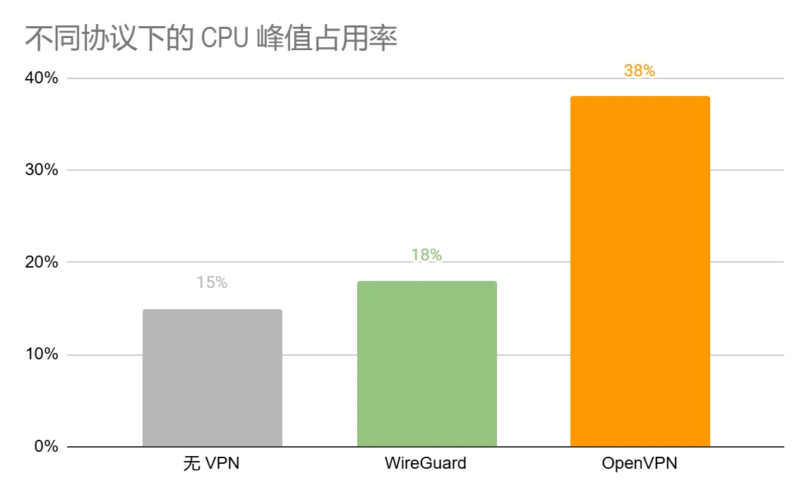 WireGuard (现代): 18% (仅增加 3%)