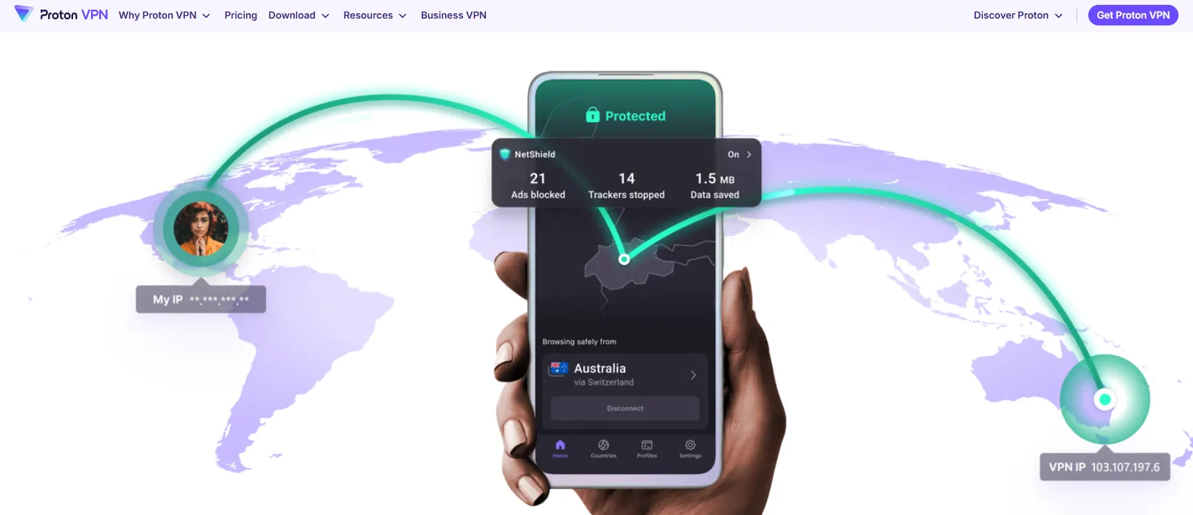 NetShield 高级防护:内置广告、跟踪器和恶意软件拦截工具。实测显示,启用 NetShield 后能显著减少网页中占用资源的广告加载,不仅保护了隐私,还变相提升了在受限网络下的整体浏览速度。