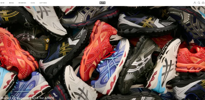 美式街头潮流的殿堂级品牌,由 Ronnie Fieg 创立。Hype 联名圣地,发售频率高。Kith 拥有极强的品牌叙事能力,其自营产品线和与 New Balance、Asics 的合作联名,在市场上具有极高的溢价和话题性,是北美最难抢的网站之一。网站风格干净、具有强烈的编辑内容感,注重品牌叙事。