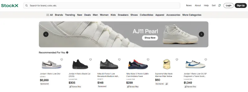 全球最大的球鞋“股票交易所”。它将球鞋交易引入了金融市场的概念,价格实时浮动,透明公开。StockX 不仅出售球鞋,还包括街头服饰、手袋、集换式卡牌等,产品线极为广泛。它的核心魅力在于其高度的流动性和价格发现机制,用户可以清晰地看到历史成交价、平均转售价和实时供需。
