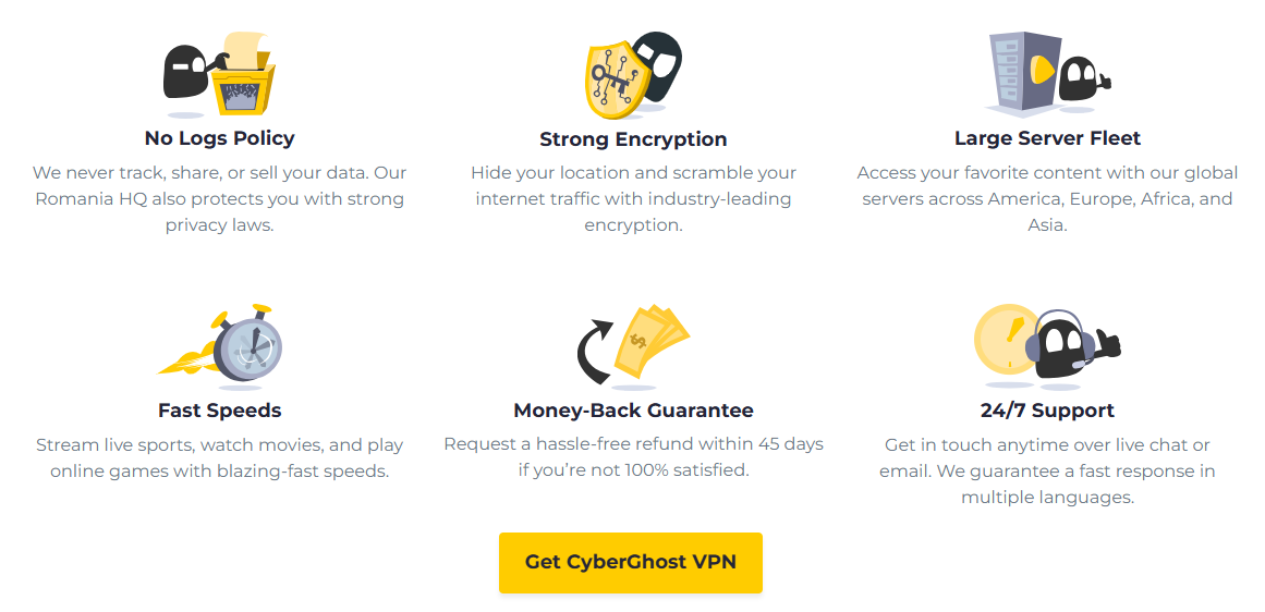公司所有权:CyberGhost 属于 Kape Technologies 旗下。这家公司曾有过一些争议历史,但他们已经彻底改变方向,现在专注于顶尖的 VPN 品牌(包括 ExpressVPN),他们把隐私和安全放在第一位的决心是毋庸置疑的。