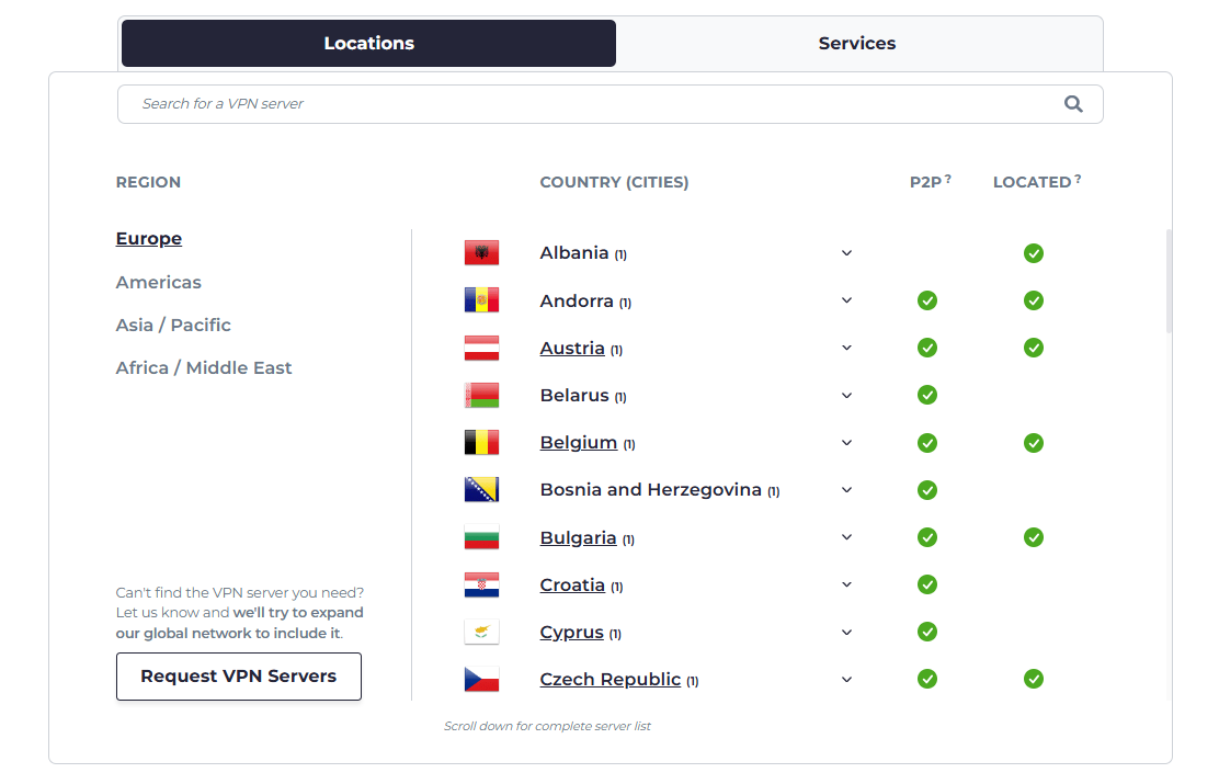 虽然 CyberGhost 很棒,但它确实不是万能的,有些冷门的地区它搞不定: