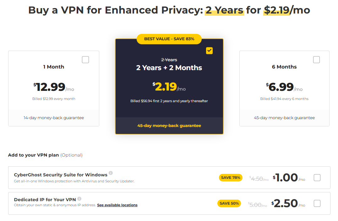 超值优惠:长期套餐有 83% 的惊人折扣,算下来每月仅 $2.19 左右!