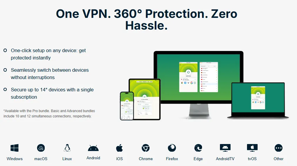 广泛的设备兼容性: 无论是你的笔记本、手机、平板,甚至路由器(它的路由器App非常棒),ExpressVPN 都能轻松支持,一个账号能同时保护多台设备,非常实用。