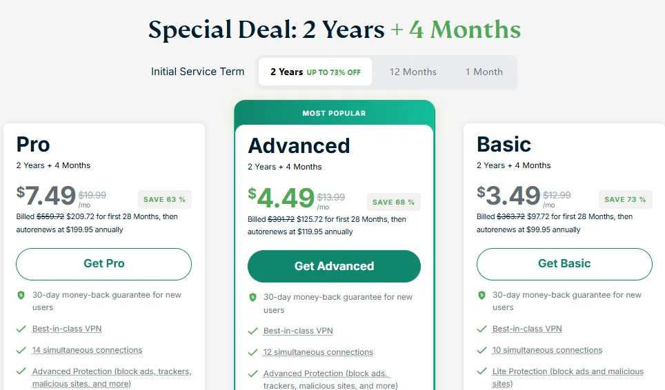 建议: 这是最贵的选项。除非你确定只需要用一个月,否则不推荐,因为它无法享受到大幅度的折扣。
