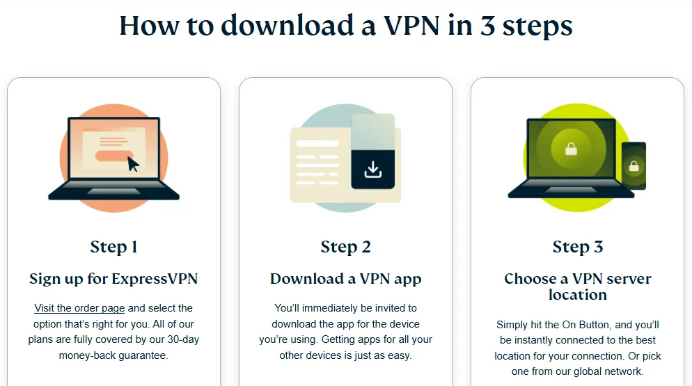 一点都不难。 ExpressVPN 提供无条件 30 天退款保证。如果你在试用期内发现不适合,可以直接联系他们的 24/7 在线客服申请全额退款。整个流程简单、快速、透明,没有任何隐藏的套路或障碍。