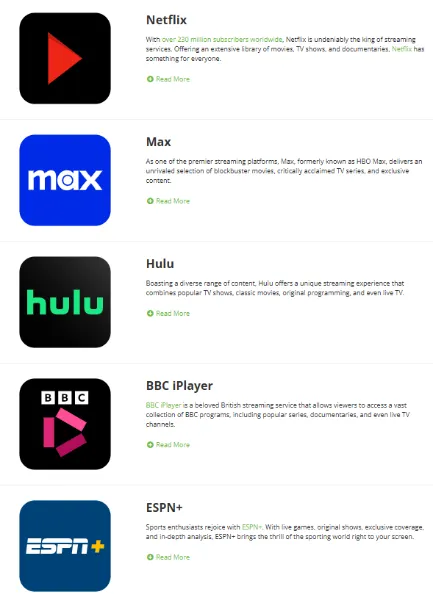 我们的测试显示,IPVanish 对 美国区 Netflix、Hulu 和 Max (HBO) 的解锁非常稳定,且能流畅播放高清内容。但对于非美国地区的流媒体库,解锁能力可能存在波动性。
