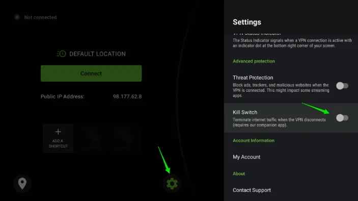 为确保下载过程的匿名性和安全性,用户必须激活安全开关(Kill Switch),以防 VPN 意外断开时 IP 泄漏。