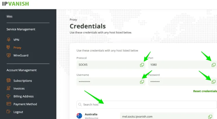 SOCKS5 代理服务:除了常规 VPN 连接,IPVanish 还提供了超过 20 个节点的 SOCKS5 代理。