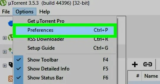 打开 BitTorrent,进入 选项 (Options) -> 设置 (Preferences) -> 连接 (Connection)。