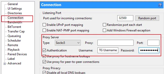 关键设置: 务必勾选“对对等体连接使用代理”以确保 IP 完全隐藏。