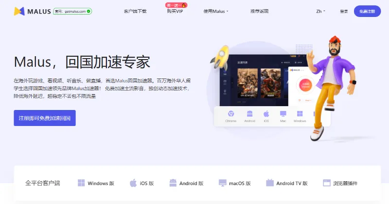 Malus 是一个专为海外华人回国需求设计的加速器。它主打“智能加速模式”和“全球回国专线”,如果你追求连接品质,它是一个非常好的选择。
