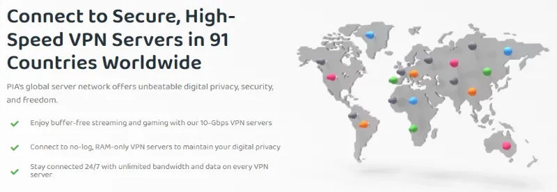 总结: PIA 在近距离连接时提供了顶级且低延迟的性能,足以匹敌市场上的任何高端 VPN。用户可通过其广阔的服务器网络,自由选择最近的节点以获得最快、最可靠的连接。