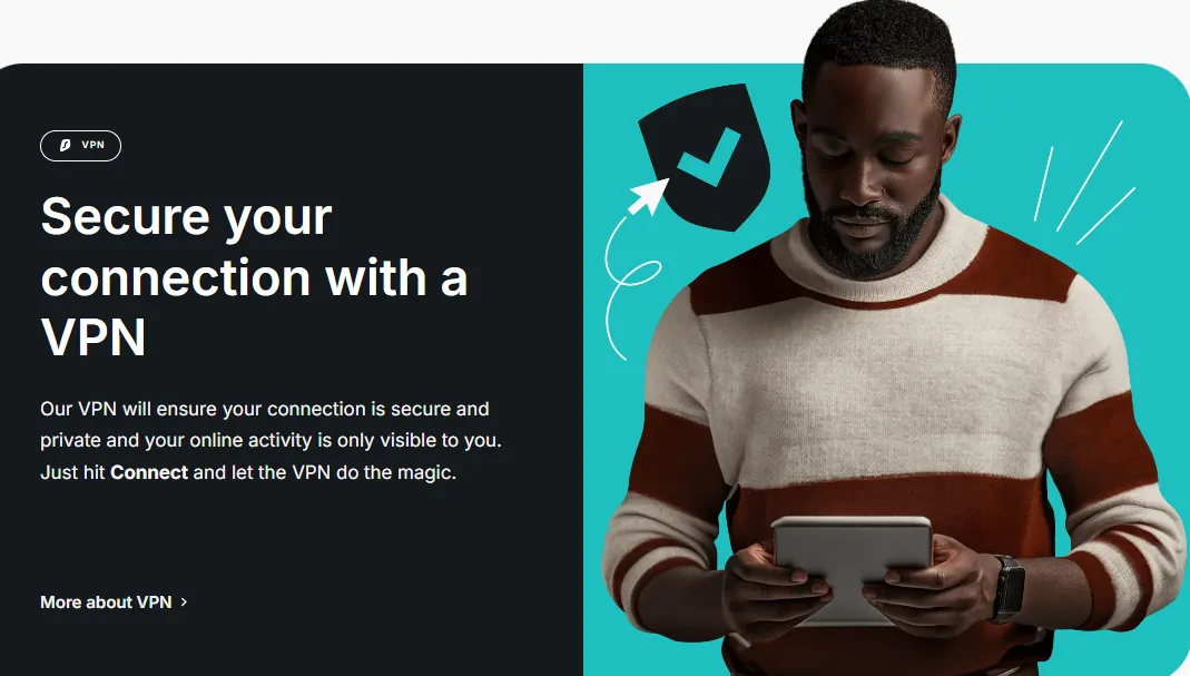 VPN(虚拟私人网络)是保护您在公共Wi-Fi上上网安全的最可靠方法。它可以帮你建立加密隧道、抵御窥探和拦截、隐藏真实身份,使用几道防护,让黑客很难将您作为特定攻击目标,同时网络管理员和网站也难以追踪您的在线活动。