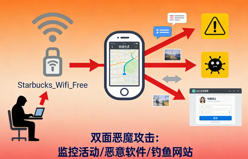 一、 公共 Wi-Fi 常见安全风险:识别“中间人”攻击与“虚假热点”