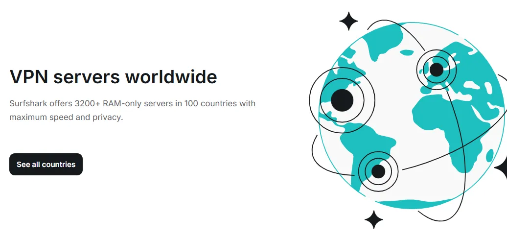 Surfshark在全球 100 个国家/地区 拥有超过 3200台服务器。