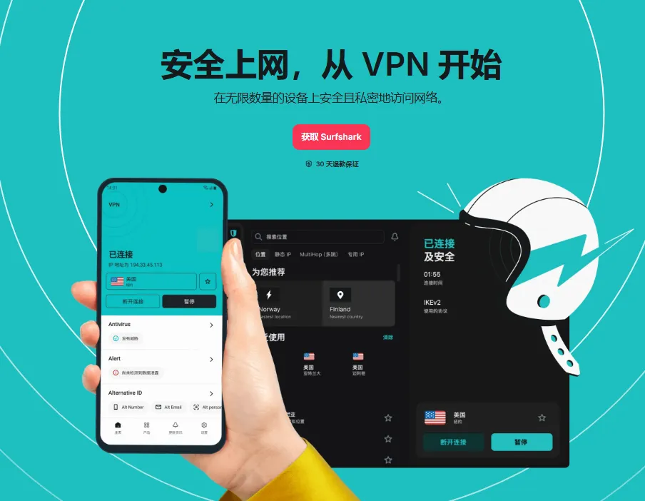 2. Surfshark:极致性价比与多设备之王