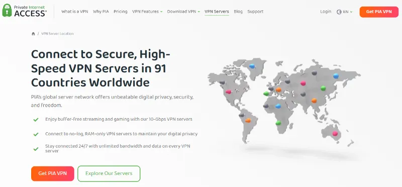 全球覆盖广:服务器网络庞大,与 PIA 共享许多基础设施,有助于用户连接到优化过的骨干网络,实现跨区游戏的路由优化。
