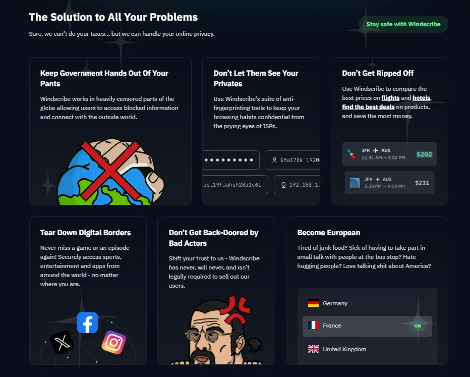 Windscribe 是一款拥有强大安全性和隐私承诺的优秀 VPN。