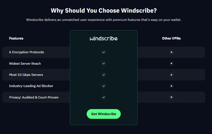 评测结论抢先看: Windscribe 总体上是安全可靠的,其免费版堪称市面上最好的免费 VPN 之一,拥有强大的安全功能和对用户隐私的重视。然而,其付费版在服务器规模、客户服务和特定功能(如 P2P 速度)方面,相较于顶级的付费竞品,仍有明显的不足。